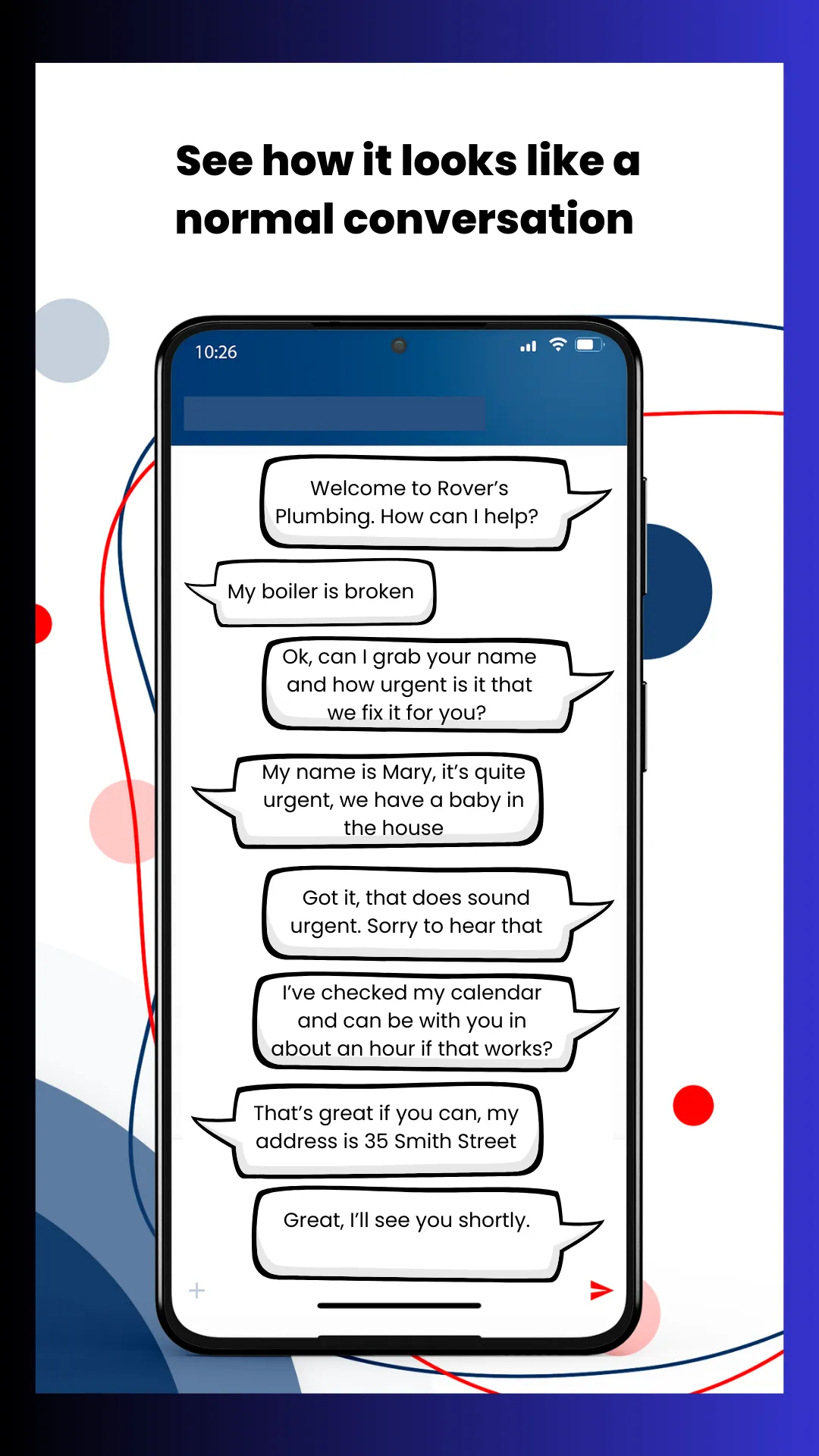 Through customised questions, the assistant handles objections, answers FAQs, and books appointments, all tailored to your services.
